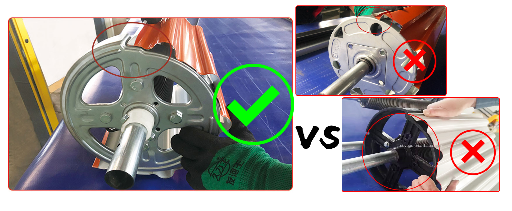 La cortina se fija en el tambor. Después de que la cortina se fije en el tambor, puede hacer una ronda perfecta, la cortina de la puerta se enrolla suavemente hacia arriba y hacia abajo.