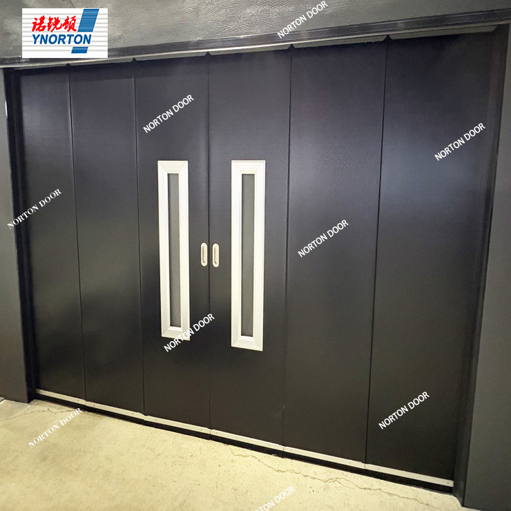 La puerta de garaje de deslizamiento lateral desarrollada por Norton adopta un mecanismo de cierre y cierre de deslizamiento lateral. Su característica más notable es la eficiencia del espacio, lo que la hace particularmente adecuada para garajes con altura de techo limitada o dimensiones extra anchas. Las pistas se instalan al ras contra las paredes laterales, eliminando la necesidad de espacio libre. La puerta individual puede alcanzar un ancho máximo de 6 metros, mientras que una configuración de doble puesta en parte puede extenderse hasta 12 metros, acomodando las necesidades de estacionamiento de vehículos múltiples.