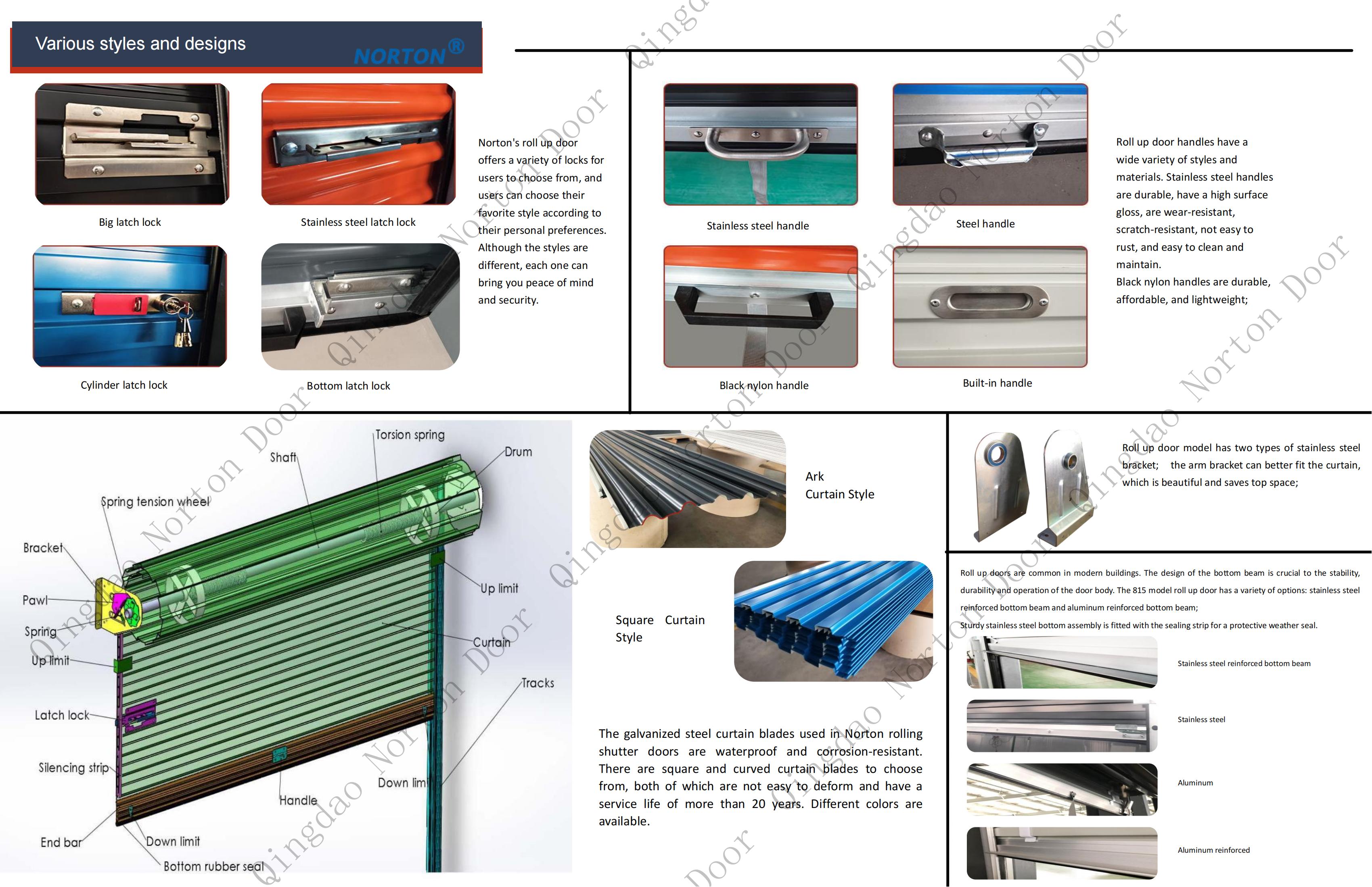 Qingdao Norton Door Technology Co., Ltd. cuenta con una instalación de producción moderna de 7,000 metros cuadrados. El Departamento Técnico de Norton inicia el proceso mediante la realización de investigaciones de mercado basadas en las demandas del mercado y los requisitos del cliente, recopilando necesidades específicas de dimensiones, estilos y funcionalidades de las puertas rodantes. El equipo de diseño luego utiliza CAD y otro software de diseño para crear dibujos detallados para las puertas de acero de autoalato personalizadas manuales basadas en los hallazgos de la investigación.